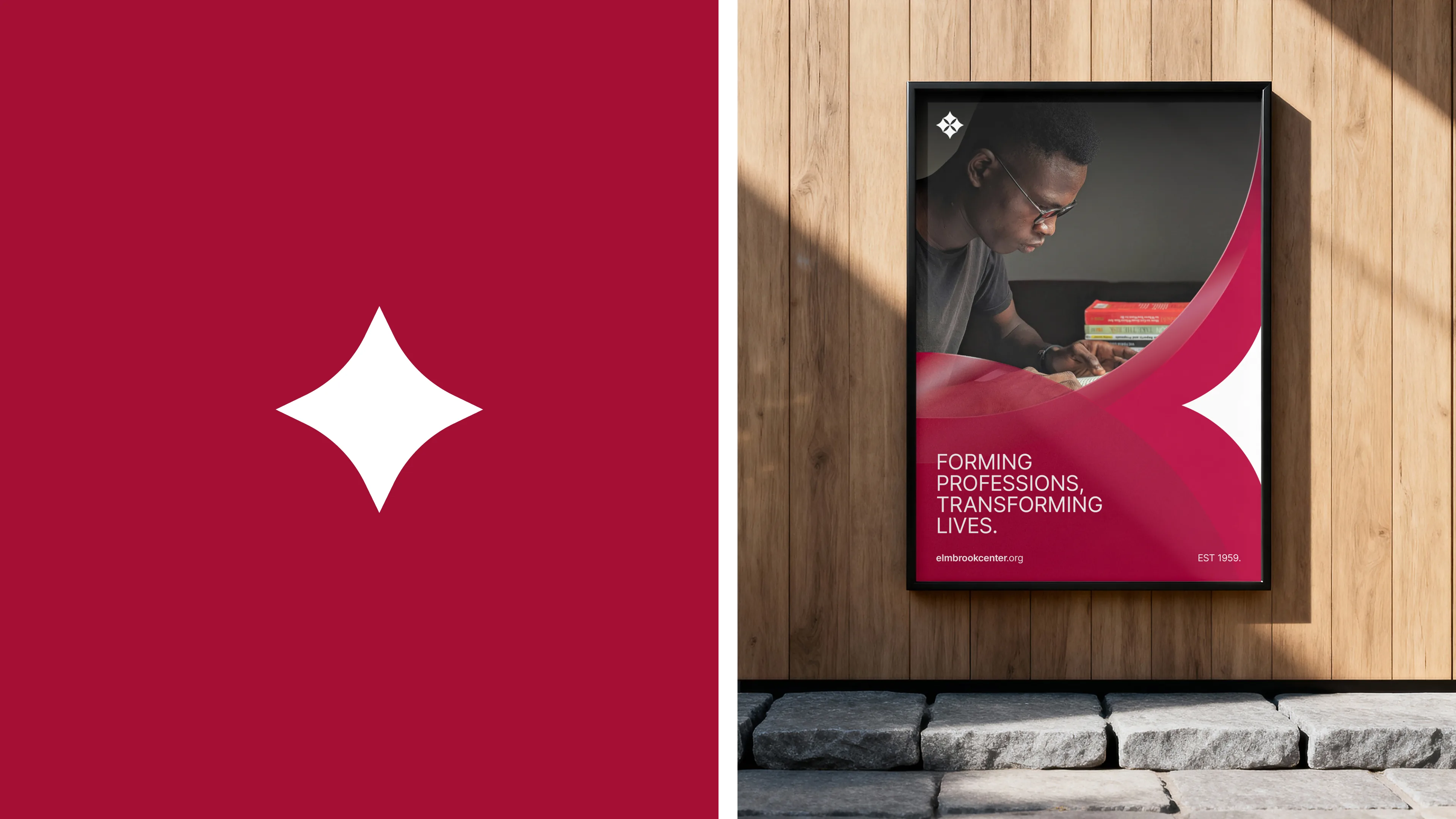 Elmbrook is an educational center for young men near Harvard University in Cambridge, MA. Since 1959 the center has helped prepare students to become dedicated professionals who thrive in work and life and who advance their profession as a service to persons and society. When I was approached for this redesign, it was a big challenge to bridge the gap between modernity and heritage. The result was an identity that is rooted in history but with a future-fowrd intention.